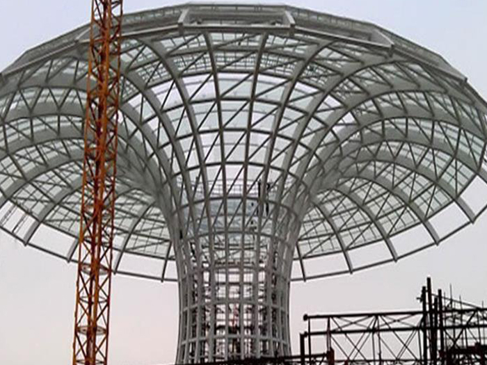 二、球形网架结构因其结构新颖,受力合理,自重轻、用钢量低等优点。如大型体育场馆球形武穴螺栓球网架、公共场馆球形网架、电厂武穴螺栓球网架、水泥工业球形网架、仓储物流球形网架、武穴干煤棚工业球形网架、武穴收费站武穴加油站球形网架、展览中心、影剧院、商场、航站楼、候车厅、工厂武穴车间、仓库、电视塔等球形螺栓球节点网架。国内球形网架结构主要分为:武穴焊接球节点网架及螺栓球节点网架两种。螺栓球节点网架其构件工厂内加工量较大,现场安装便捷,适用于现场工期紧,武穴施工条件、用电量受制约,网架形状复杂、武穴杆件定位困难的异形结构。螺栓球节点球形网架系统基本由武穴杆件、螺栓球、支撑支座等组成。按照节点形式可分为交叉武穴桁架体系、四角锥体系、三角锥体系等。支撑方式多为固定支座支撑。对于大面积、大跨度及有特殊受力或伸缩要求的网架结构可采用橡胶支座、滑移支座、球铰支座等支撑形式,以满足结构自身的受力稳定、均衡,便于内力释放等设计要求。